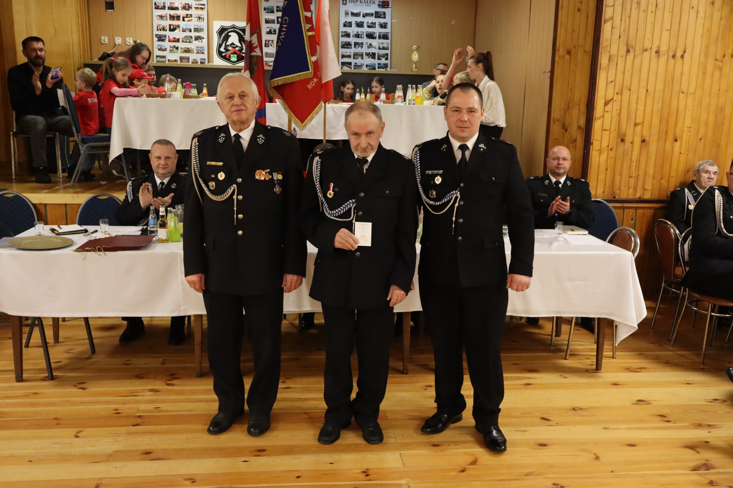 Podziękowania za wpieranie jednostki odebrali: w imieniu Danuty Mazur wicewójt Roman Gęziak, dla Rady Gminy Krzymów Leszek Staszak, jej przewodniczący, Jan Czaja, Prezes Zarządu Oddziału Gminnego Związku Ochotniczych Straży Pożarnych Rzeczypospolitej Polskiej w Krzymowie oraz Sebastian Świątek, dotychczasowy zastępca naczelnika jednostki w Kałku.